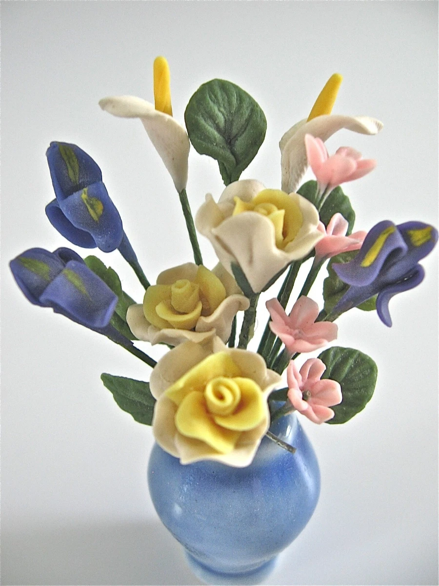 Doll House Dollhouse Miniature Flower Arrangement In Blue Porcelain Vase Ebay